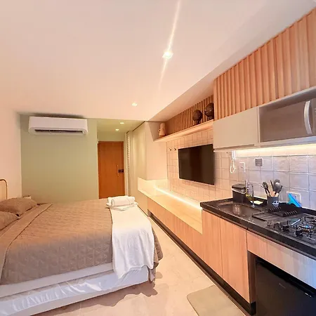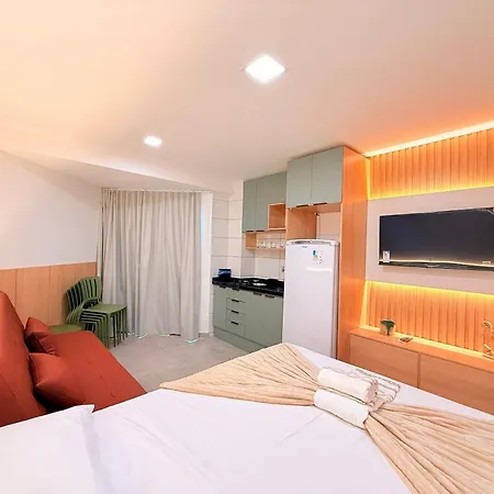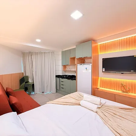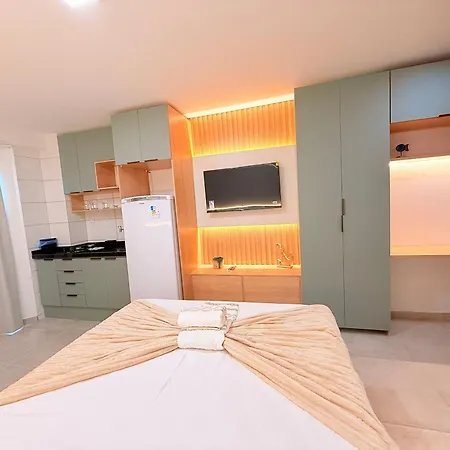 Max Carneiros Suites By Hm Temporada inclui varanda e cozinha totalmente equipada mobilados com armário, bem como comodidades de entretenimento como TV.